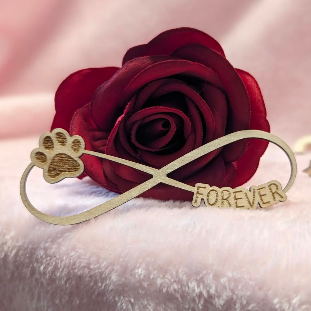 Endlosschleife mit Pfote und Forever. Diese zarte Infinity-Schleife steht für ewige Liebe zu deinem Haustier.
