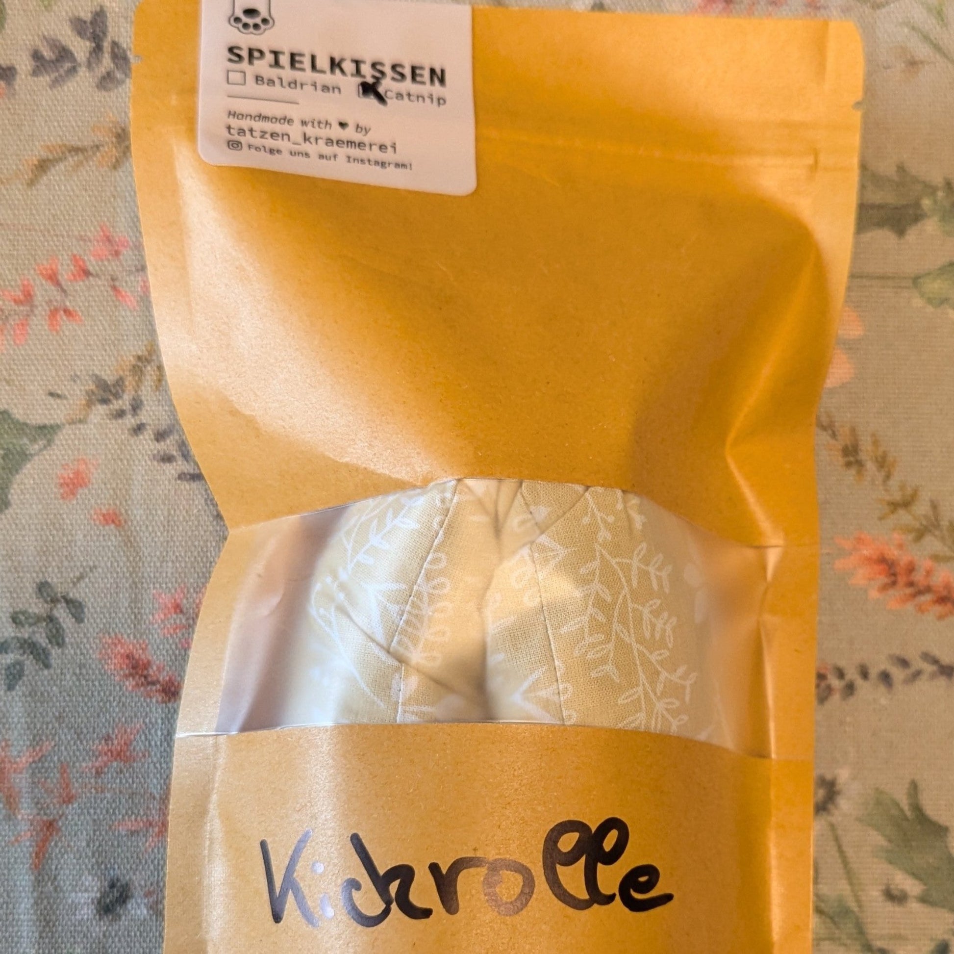 Die Kickrolle wird in einem Aromabeutel geliefert. Damit die Wirkung der Katzenminze lange erhalten bleibt das Spielzeug nach Benutzung trocknen lassen und im Beutel aufbewahren.